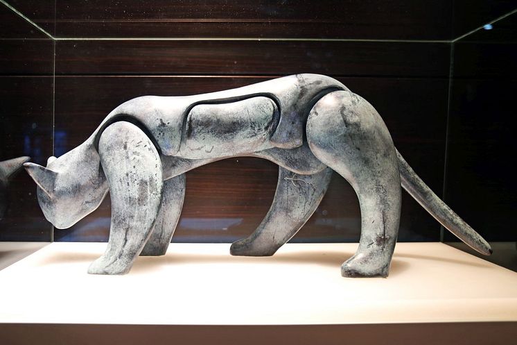 Die Plastik "Die Katze" aus dem Jahr 1991 von Horst Meier aus der Ausstellung "Aus dem Schutzraum der Heimlichkeit" im Hotel The Westin Leipzig