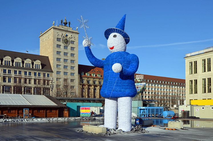 Eiswichtel-Figur auf der zukünftigen Eisbahn