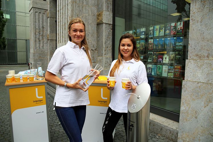 Erfrischend: Trinkwasserbrunnen vor der Tourist Information Leipzig