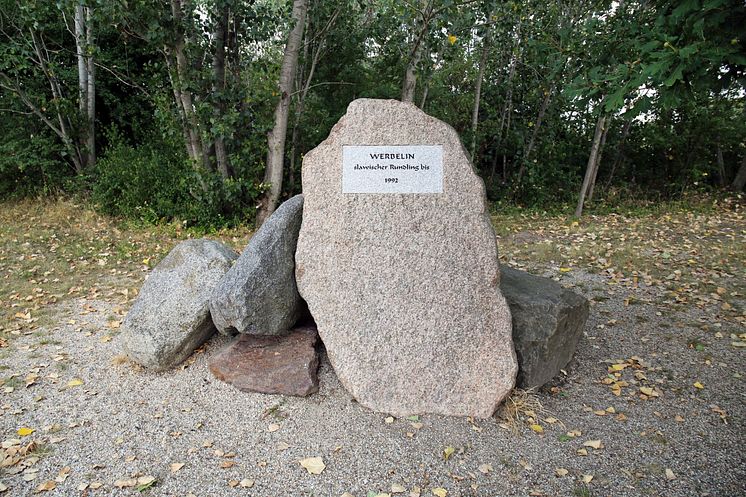 Gedenkstein für das ehemalige Dorf Werbelin, das 1992 dem Braunkohletagebau weichen musste