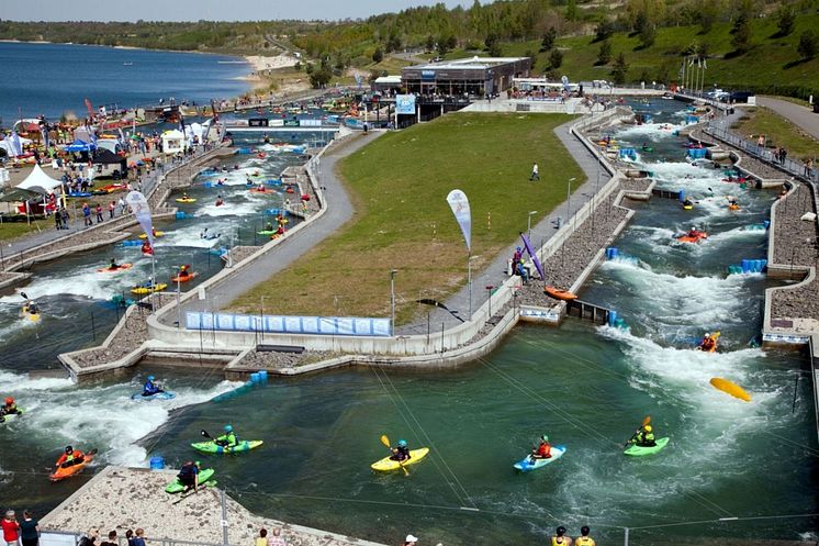 Geübte Paddler können sich beim XXL-Paddelfestival auf dem wilden Wasser ausprobieren.