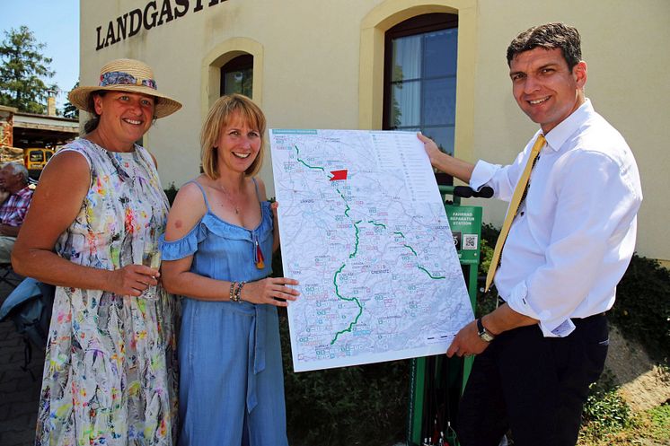 Kathrin Lehne, Sandra Brandt und Henry Graichen stellen die geplanten Aktivitäten für die weitere Entwicklung des Mulderadwegs vor