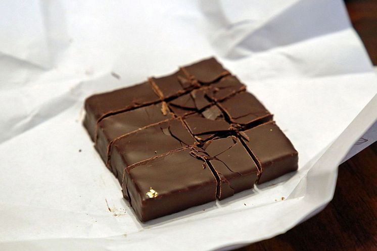 "Leipziger Liebelei": Die handgemachte Schokolade mit Pralinenfüllung wird durch ein Stück Blattgold verziert