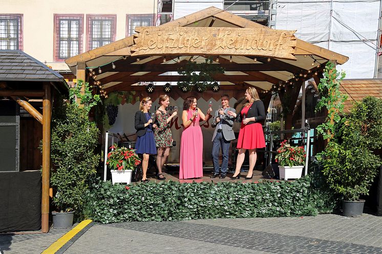 Leipziger Weinfest - Eröffnung mit den sächsischen Hoheiten, Moderatorin Ute Schlossarek und Marktamtleiter Dr. Walter Ebert