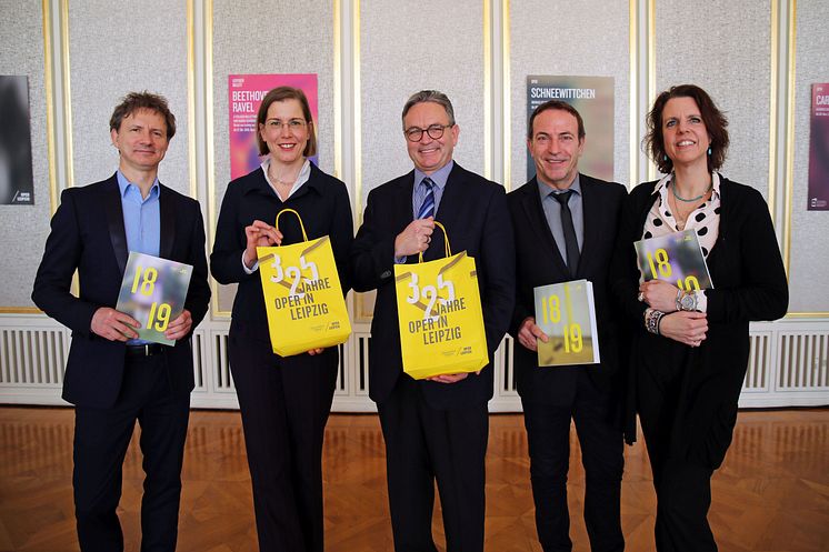Mario Schröder, Dr. Skadi Jennicke, Prof. Ulf Schirmer, Cusch Jung und Franziska Severin stellten die Höhepunkte der Saison 2018/2019 der Oper Leipzig vor (v.l.)