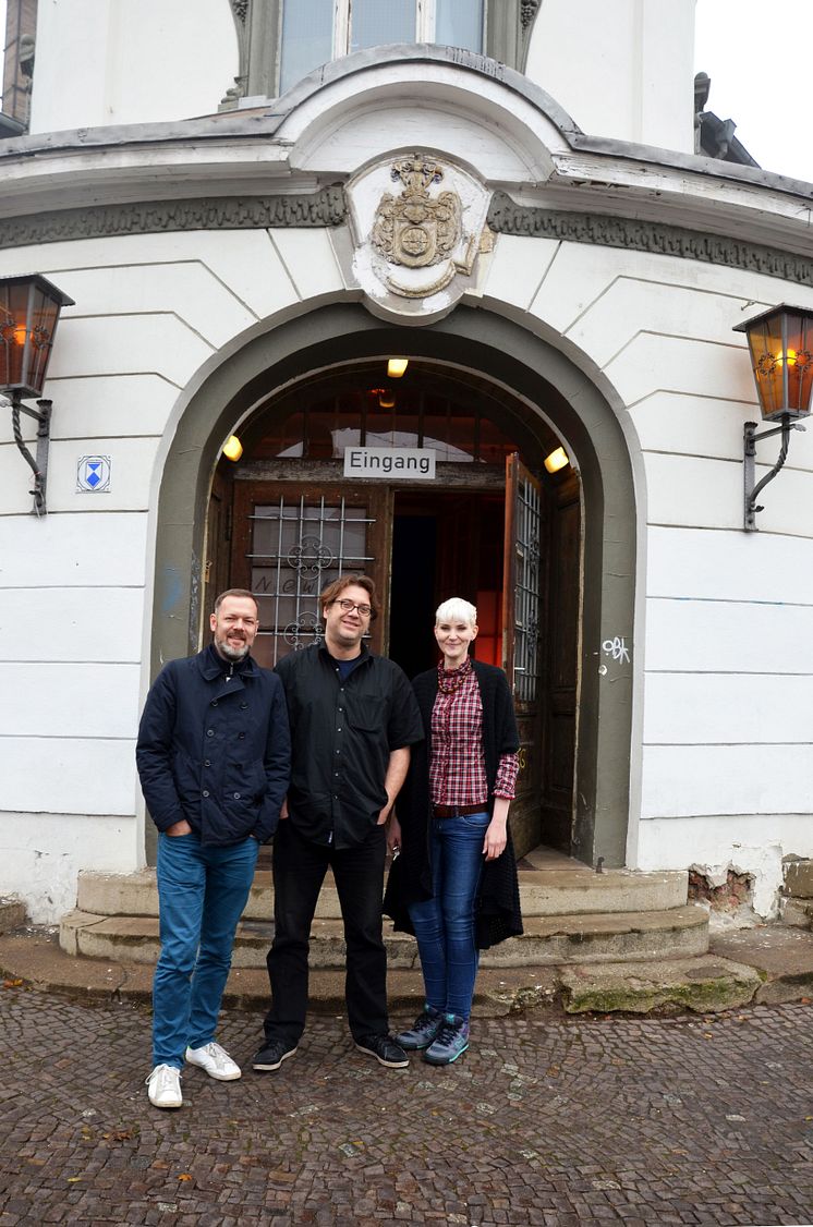 Oliver Schröter, Jörg Folta und Anja Wedwitschka vom Felsenkeller freuen sich über die Wiedereröffnung