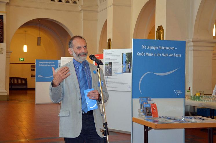 Prof. Dr. Werner Schneider, der Leiter der Leipziger Notenspur-Initiative, bei der Eröffnung der Ausstellung