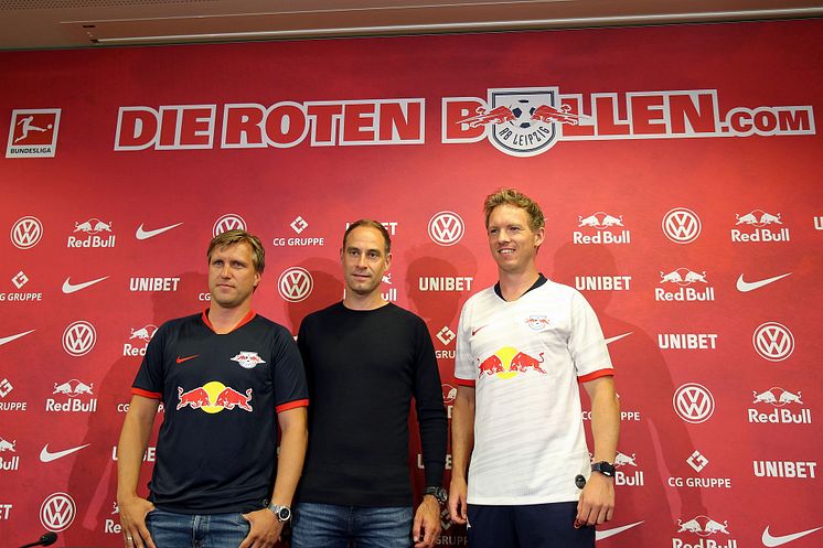 RBL-Sportdirektor Markus Krösche, Geschäftsführer Oliver Mintzlaff und Trainer Julian Nagelsmann