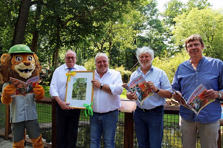 Tammi, Wolfgang Welter, Prof. Jörg Junhold, Thomas Liebscher und Bert Sander freuen sich auf das Jubiläumswochenende im Zoo Leipzig (v.l.)