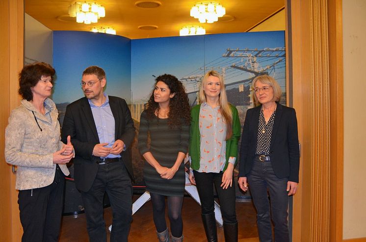 v.l.: Dr. Eva-Maria Stange, Tobias Hollitzer, Huda Alqaisi, Lilith Müller und Sonja Brogiato stellten das neue arabischsprachige Angebot vor
