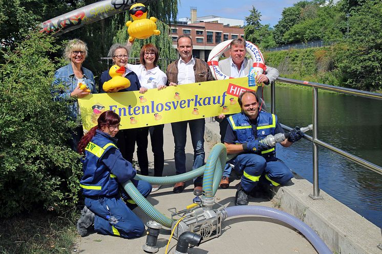Veranstalter des 19. Leipziger Wasserfestes mit Mitarbeitern des THW