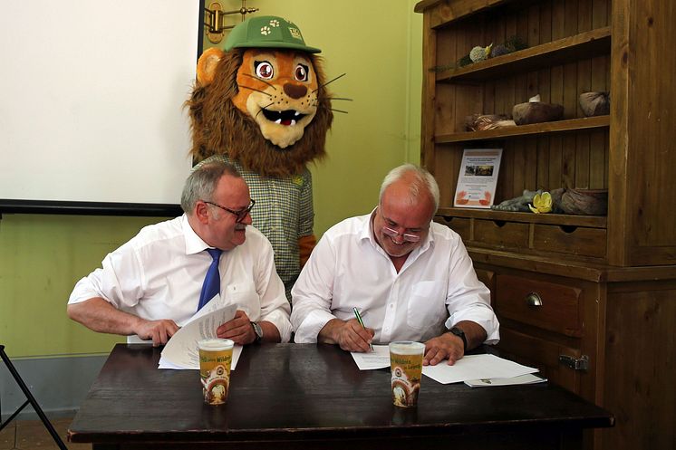 Wolfgang Welter und Prof. Jörg Junhold unterzeichnen den Vertrag zur Verlängerung der Goldsponsorenschaft von Ur-Krostitzer