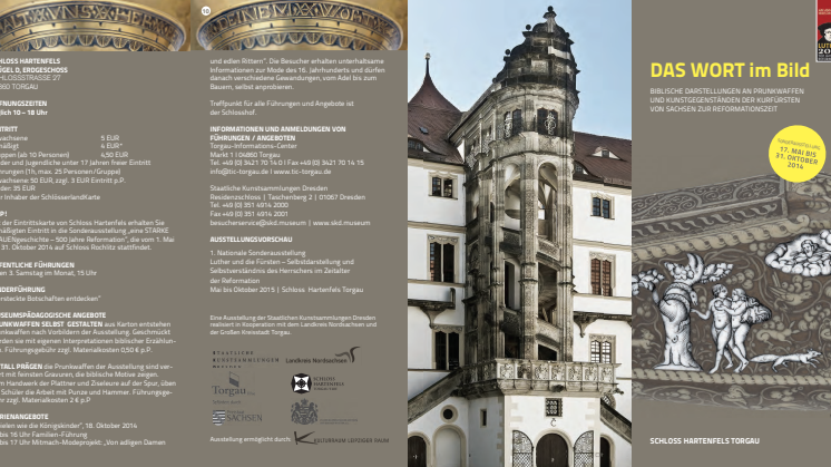 Im Rahmen der Lutherdekade zum 500. Jubiläum der Reformation im Jahr 2017 richten die Staatlichen Kunstsammlungen Dresden in Zusammenarbeit mit dem Landkreis Nordsachsen und der Stadt Torgau die Sonderausstellung „DAS WORT im Bild – Biblische Darstellungen an Prunkwaffen und Kunstgegenständen der Kurfürsten von Sachsen zur Reformationszeit“ aus. Auf 400qm wird die Welt der sächsischen Kurfürsten in der früheren Neuzeit lebendig. Die zutiefst religiös geprägte Welt des 16. Jahrhunderts wird an herausragenden Kunstgegenständen anschaulich gemacht.