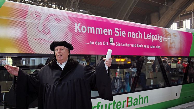 Feierliche Shuttle-Taufe: Linie der Erfurter Bahn wirbt für "Luther in Leipzig"