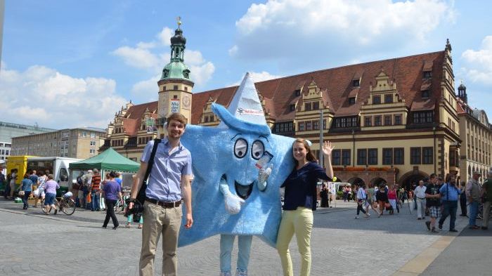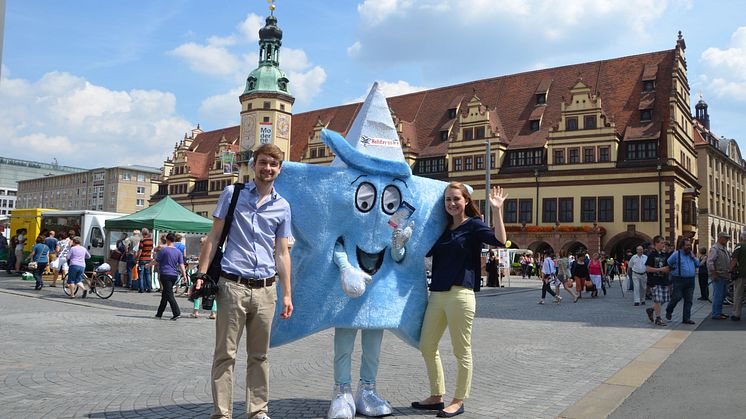 Leipzig empfängt Sternchen: Das Maskottchen von "Holiday on Ice" besuchte am 15. Juli 2014 die Stadt Leipzig und begrüßte während eines Spaziergangs durch die Innenstadt die neugierigen und an der neuen Show interessierten Leipziger.