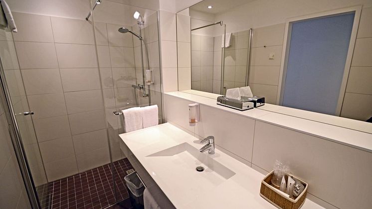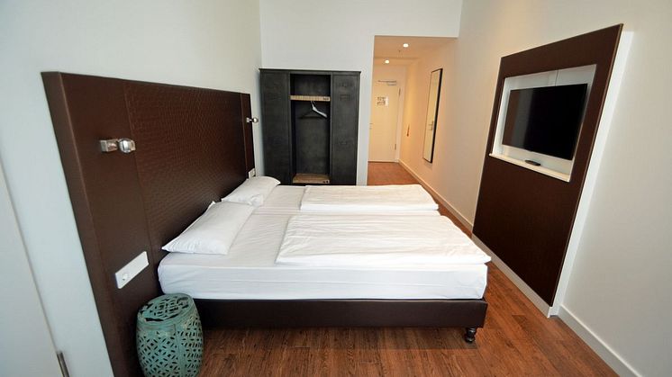 Die Räume besitzen inklusive Bad eine Größe von 24 sowie 35 Quadratmetern. Die Badezimmer sind mit Fußbodenheizung ausgestattet. Jedes Zimmer verfügt über schallisolierte Fenster und einen kostenlosen W-LAN-Hotspot. Von den Balkonen in der vierten Etage genießen die Gäste einen einzigartigen Panorama-Blick über Leipzigs Innenstadt.