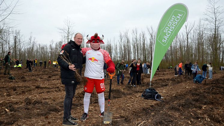Zu den Unterstützern vor Ort von „Gemeinsam zur Waldmeisterschaft“ zählten neben Prof. Jörg Junhold (Direktor Zoo Leipzig, Botschafter Host City Leipzig zur UEFA EURO 2024), Stefan Schedler (Gesamtprojektleiter Host City Leipzig zur UEFA EURO 2024) und Robert Dorn (Vorstand Teamsport Sachsen) u.a. auch Mitarbeiter vom Zoo Leipzig und der Stiftung Wald für Sachsen, von der Leipzig Tourismus und Marketing GmbH, Leipziger Messe, Auerbachs Keller, Teamsport Sachsen, H4 Hotel Leipzig, Hyperion Hotel und Volksbank. Während der Pflanzaktion sagte Prof. Junhold erfreut. „Heute bringen wir die Idee zu Ende, die wir vor fast zwei Jahren entwickelt haben. Wir wollten etwas schaffen, das auch nach dem großen Fußballfest und im besten Falle für nachfolgende Generationen bleibt. Egal, wie es im Sommer sportlich für die deutsche Mannschaft läuft – Waldmeister sind wir auf alle Fälle.“