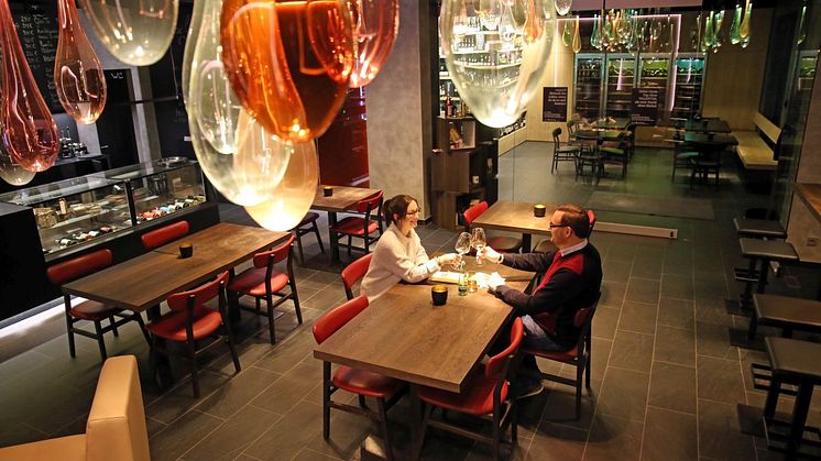 Das stilvoll eingerichtete Café mit angrenzender Feinkostabteilung ist direkt mit der Weinbar verbunden. Die handgefertigten Lampen aus der italienischen Stadt Treviso schaffen eine gemütliche Atmosphäre in den Räumen, die auch für Veranstaltungen für 60 bis 80 Personen genutzt werden können. Der Gast findet neben einem breiten Angebot an Spitzenweinen aus Deutschland, Österreich, Italien und Spanien auch Neuentdeckungen und interessante Schnäppchen vom Rest der Welt. Insgesamt verfügt die Weinhandlung über mehr als 350 verschiedene Weine und hat in ihren Weinklimaschränken nahezu alle Weine in der richtigen Trinktemperatur vorrätig.