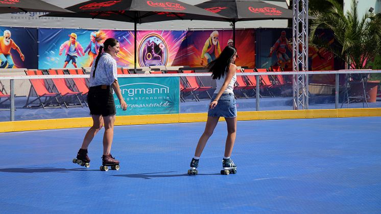 Das gesamte Veranstaltungsgelände ist bis zum 20. September täglich von 12 bis 22 Uhr kostenfrei zugänglich. Wer keine eigenen Rollschuhe mitbringt, kann sich vor Ort gegen eine Gebühr ein Paar leihen. Diese beträgt, inklusive Nutzung der Bahn, 8 Euro für Erwachsene und 6 Euro für Kinder. Es sind Rollschuhe in den Größen 29 bis 47 erhältlich. Egal ob Anfänger oder Profi – auf der Bahn mit 35 Metern Durchmesser und 885 qm Lauffläche ist Platz für alle. Zum Einsatz kommt ein hochwertiger, rutschfester Bodenbelag, der für Anfänger und Profis geeignet ist.