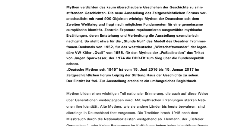 Blick in die Ausstellung "Deutsche Mythen seit 1945" im Zeitgeschichtlichen Forum