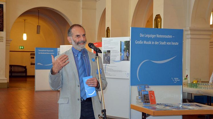 Prof. Dr. Werner Schneider, der Leiter der Leipziger Notenspur-Initiative, bei der Eröffnung der Ausstellung