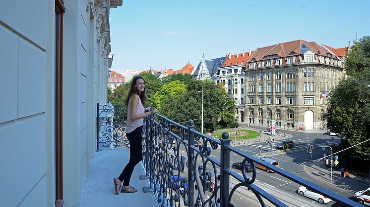 Blick von einem Zimmerbalkon in die Hainstraße des Arthotel ANA Symphonie