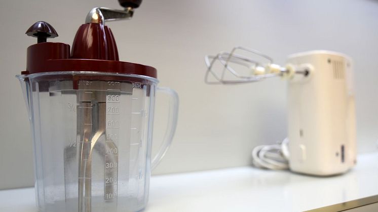 • Küchengeräte in der Ausstellung "Backen, Bügeln, Putzen, Kochen - Das bisschen Haushalt!" im GRASSI Museum für Angewandte Kunst Leipzig
