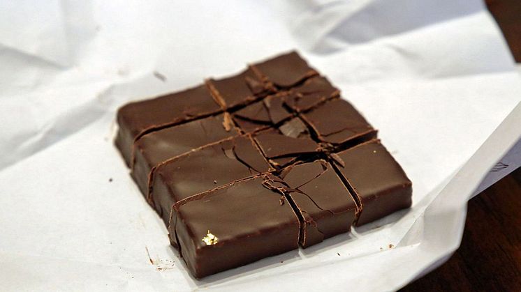 "Leipziger Liebelei": Die handgemachte Schokolade mit Pralinenfüllung wird durch ein Stück Blattgold verziert