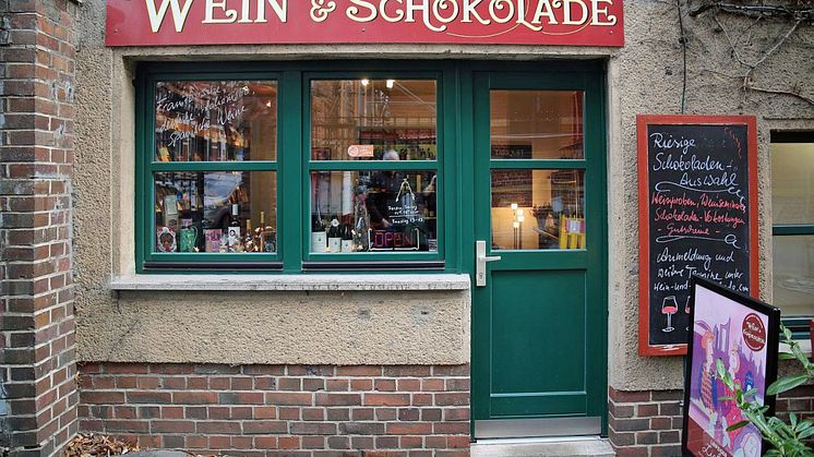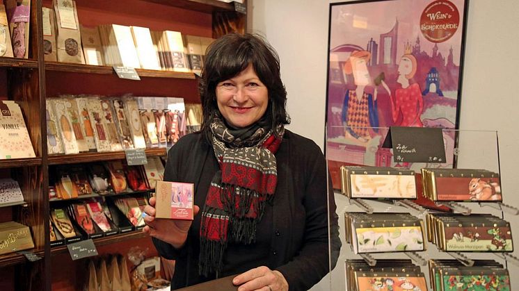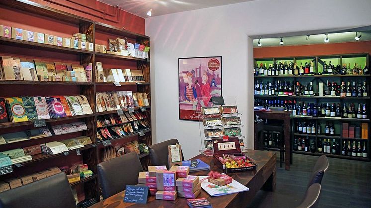 Blick in das Schokoladenfachgeschäft "Wein & Schokolade"
