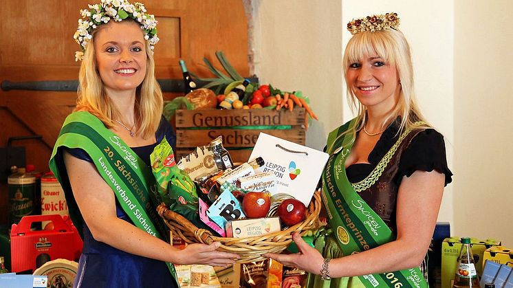 Die Sächsische Blütenkönigin Janett Schnabel und die Sächsische Ernteprinzessin Dominique Hörkner präsentieren Spezialitäten aus der LEIPZIG REGION