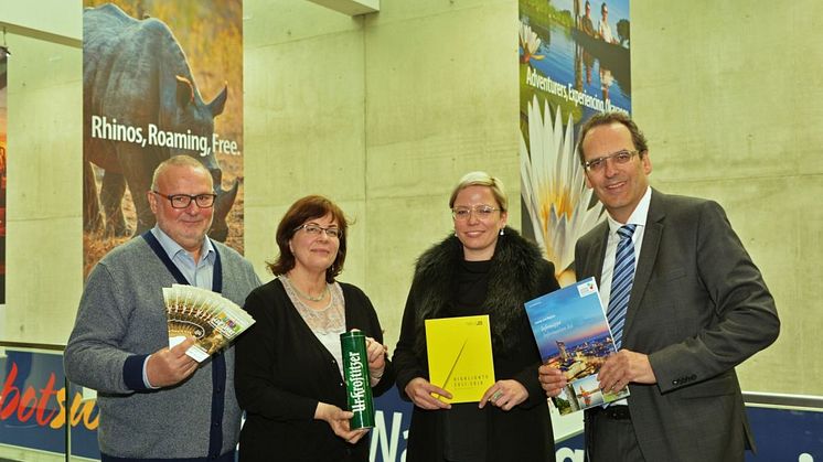 v.l.: Günter Tempelhof, Dr. Ines Zekert, Bettina Auge und Volker Bremer informierten auf der ITB 2017 über Jubiläen 2018 in Leipzig und der Region