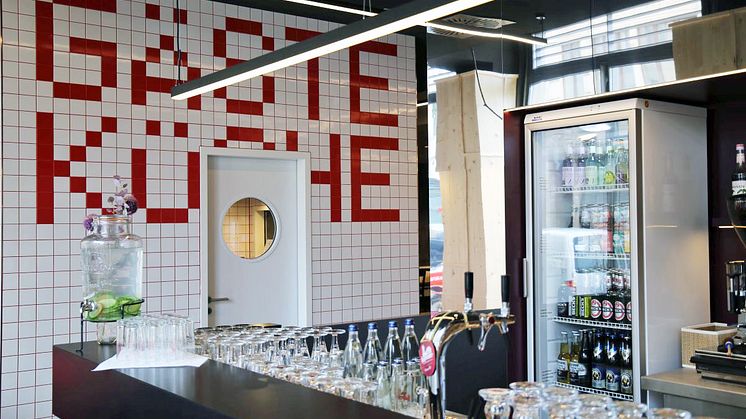 Die öffentliche Gästeküche inklusive Kühlschrank