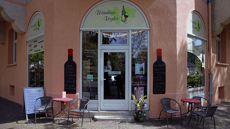 • Außenansicht (Coppiplatz) des Weinhaus Vogler mit Freisitz