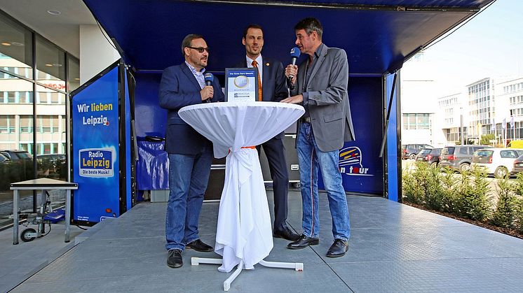 Das sympathische Moderatoren-Duo Annett Böhm und Roman Knoblauch mit Ulrich Fischer (Geschäftsführer von Mein Fischer)