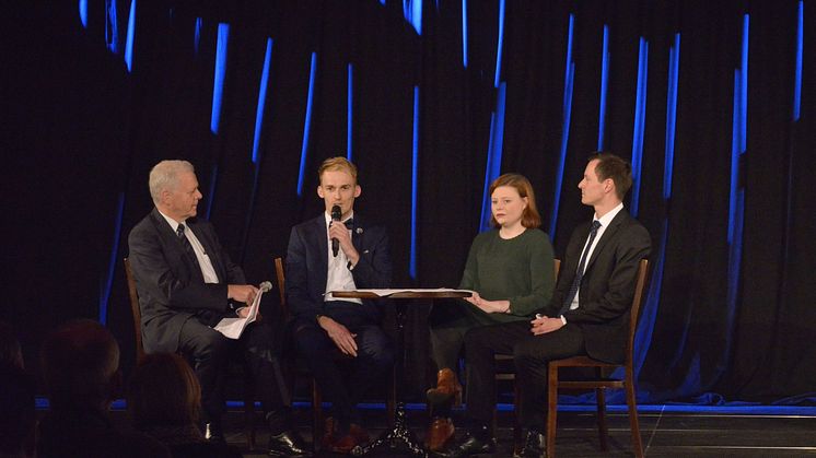 • Kupfersaal - Geschäftsführung: Marcus Müller (2.v.l.) und Elisabeth Jaspersen mit Holger Engelhardt (1.v.r., Konzertmeister der Philharmonie Leipzig)