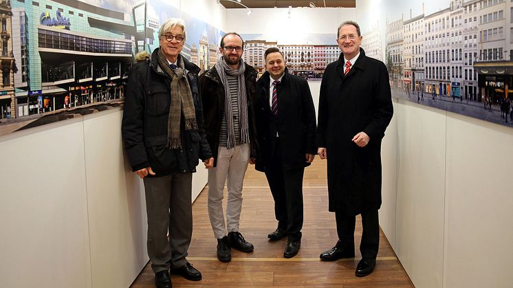 • Dr. Volker Rodekamp, Jörg Dietrich, Thomas Oehme und Dr. Harald Langenfeld eröffneten die Ausstellung "Die Straßen Lyons | Les rues de Leipzig" im Hauptbahnhof
