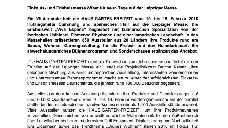 • Pressemitteilung der Leipziger Messe GmbH - Haus-Garten-Freizeit