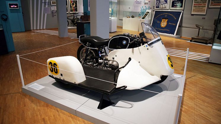 • BMW-Seitenwagengespann in der Ausstellung "In Bewegung - Meilensteine der Leipziger Sportgeschichte"