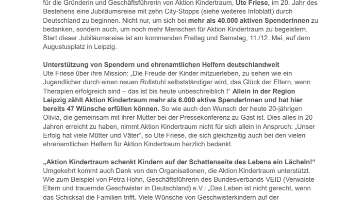 • Aktion Kindertraum 2018 - Veranstalter, Unterstützte sowie (r.) Jessica Lange (Moderatorin KIKA LIVE)