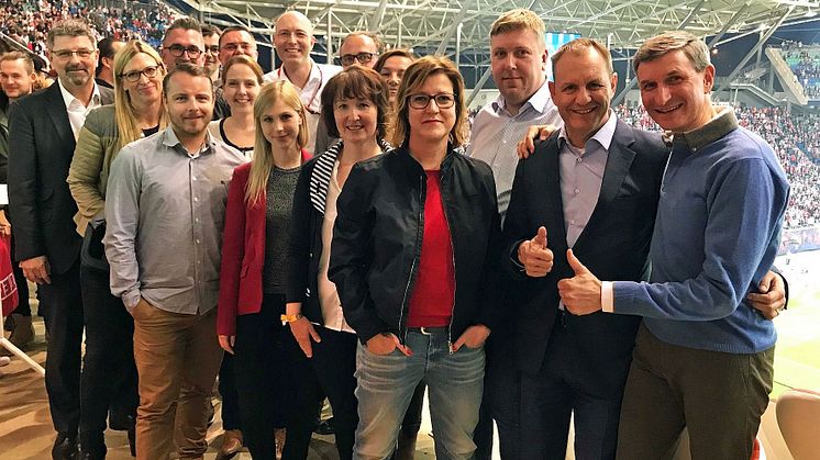 • Das Team, das den Tagungsstandort Leipzig auf der IMEX 2018 präsentiert