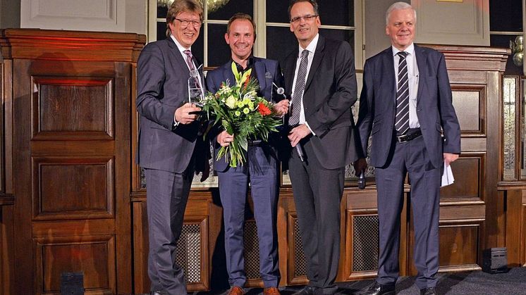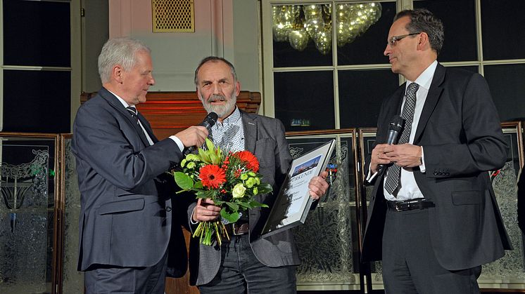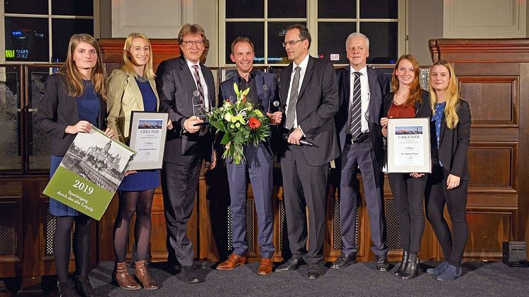 • Die Erstplatzierten Prof. Andreas Schulz und Dr. Michael Maul nahmen die Preise von Volker Bremer, Geschäftsführer der Leipzig Tourismus und Marketing GmbH, entgegen