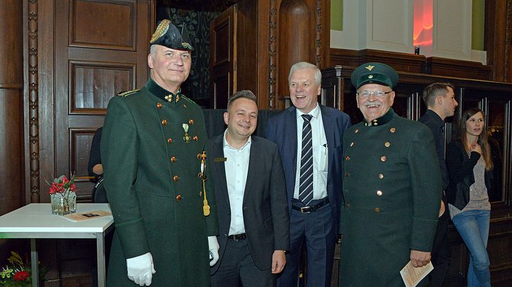 • Center-Manager der Promenaden Hauptbahnhof Thomas Oehme (2.v.l.) mit Moderator Dr. Helge-Heinz Heinker (2.v.r) und historischen Eisenbahner