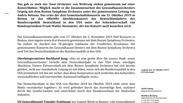 • Freuen sich auf die Leipzig Week in Boston: Leipzigs Oberbürgermeister Burkhard Jung, Kulturbürgermeisterin Skadi Jennicke und Gewandhausdirektor Prof. Andreas Schulz