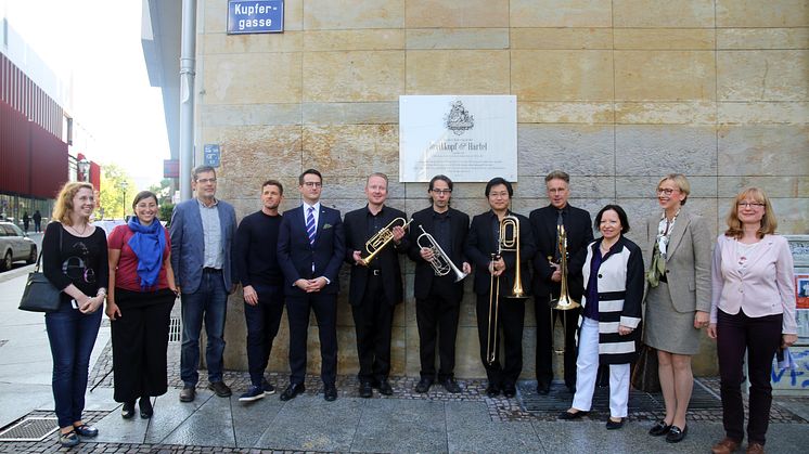 • Die Beteiligten zur Enthüllung der Gedenktafel "Breitkopf & Härtel"