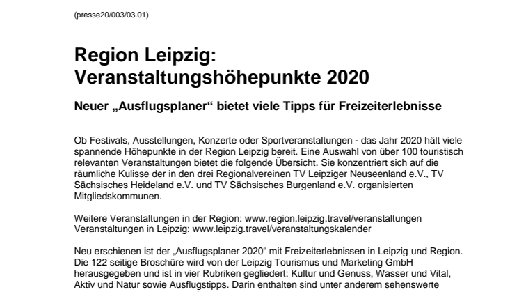 • Leipzig Region lockt mit vielen Veranstaltungshöhepunkten in 2020