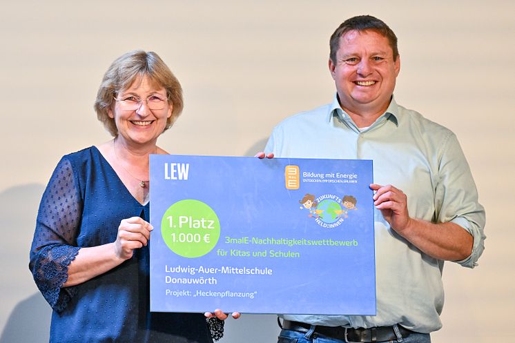 Heike Ritzka, Direktorin Mittelschule Donauwörth und Michael Smischek, LEW-Kommunalbetreuer