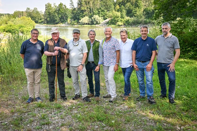 v.l.: Stefan Zott Geschäftsführer - Fischereiverband Schwaben e.V. (FVS), Gewässerbiologe Dr. Dagobert Smija, Johannes Schnell – Landesfischereiverband (LFV), Axel Bartelt – Präsident LFV, Hans-Joachim Weirather – FVS, Ralf Klocke - LEW, Martin Schumacher – LEW, Thomas Funke – LFV