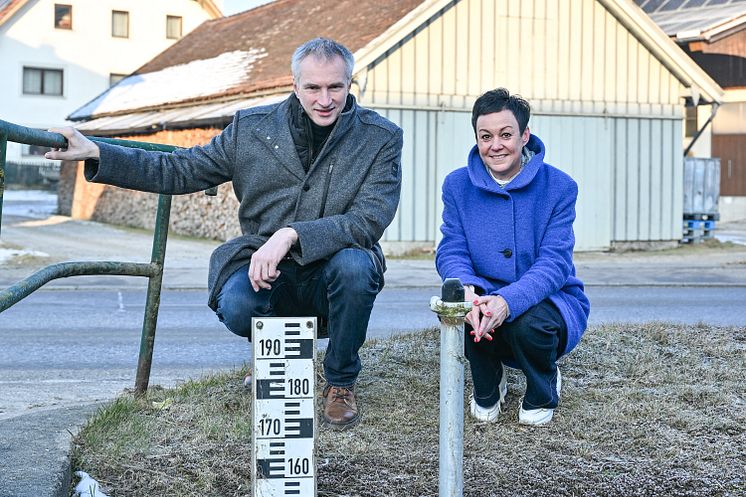 Bürgermeisterin Susanne Nieberle, Walter Albrecht, Pegelmesssensor, Inno.Live, Dorfbach Eppishausen
