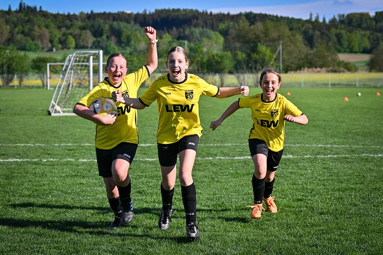 Spielerinnen des TSV Diedorf mit Trikots aus Wettbewerb Leistung Lohnt 2024