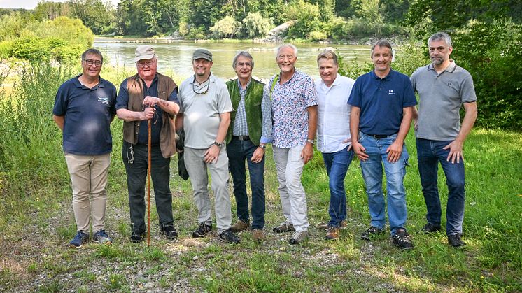 v.l.: Stefan Zott Geschäftsführer – Fischereiverband Schwaben e.V. (FVS), Gewässerbiologe Dr. Dagobert Smija, Johannes Schnell – Landesfischereiverband (LFV), Axel Bartelt – Präsident LFV, Hans-Joachim Weirather – FVS, Ralf Klocke - LEW, Martin Schumacher – LEW, Alexander Schröttner – LEW
